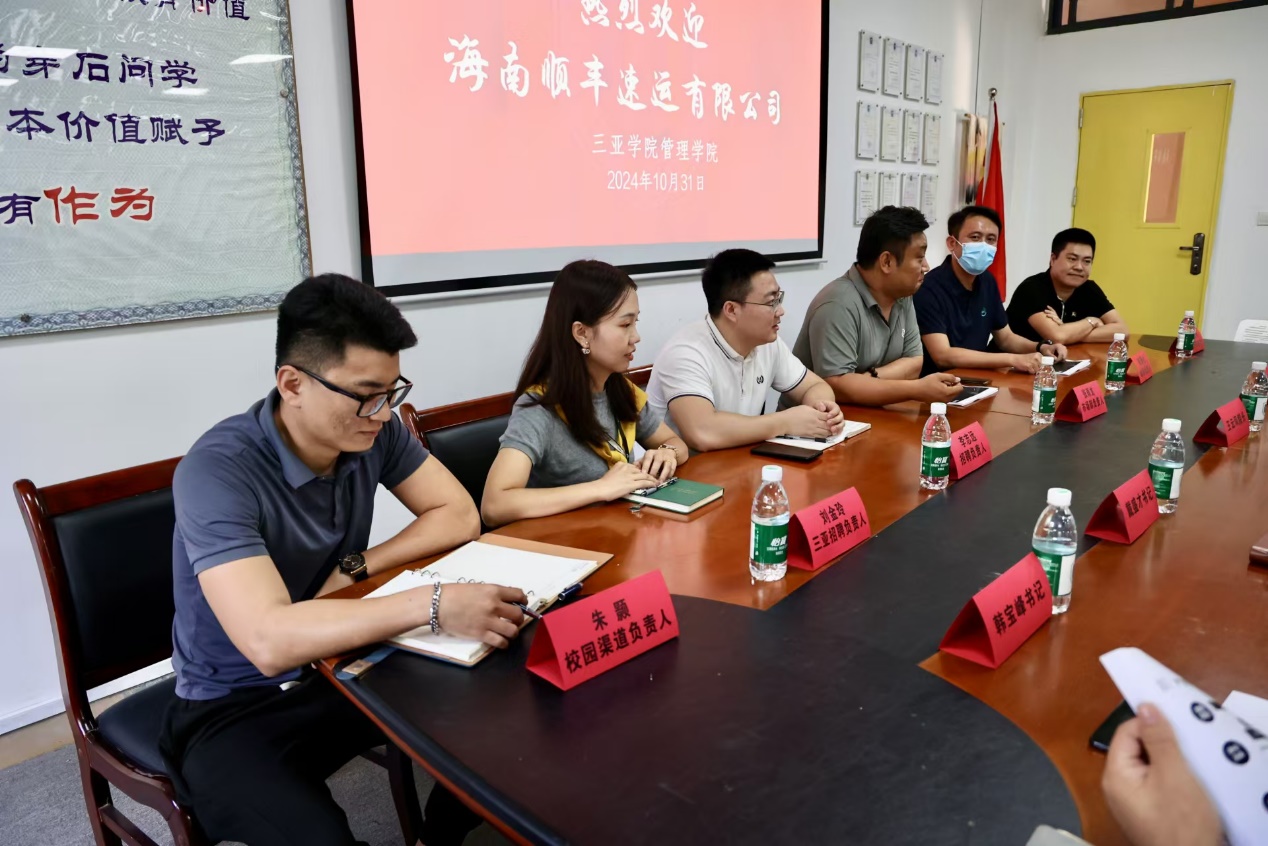 10月31日下午,在社科楼206会议室,海南顺丰速运有限公司场部负责人张雨龙一行到访公司洽谈校企合作事宜,院领导班子、物流与供应链系主任、毕业班思想导师共同参会。