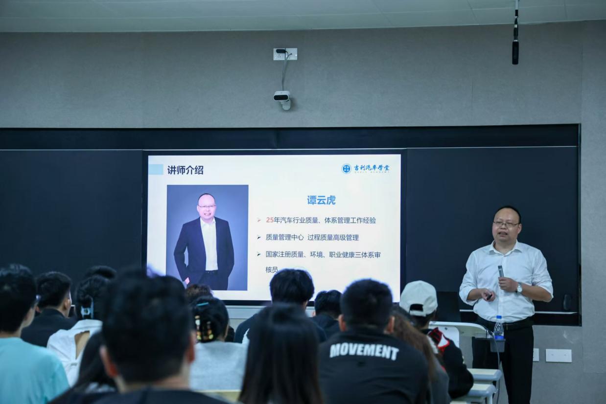 12月12日,吉利集团过程质量管理高级经理谭云虎莅临公司,为利WP计划-汽车供应链质量管理精英班的全体学员带来了一场精彩的产教融合课程——《制造质量自主保证体系》。此次课程在学院1西103智慧教室成功举行,标志着精英班第四阶段行业专家课的正式启动。